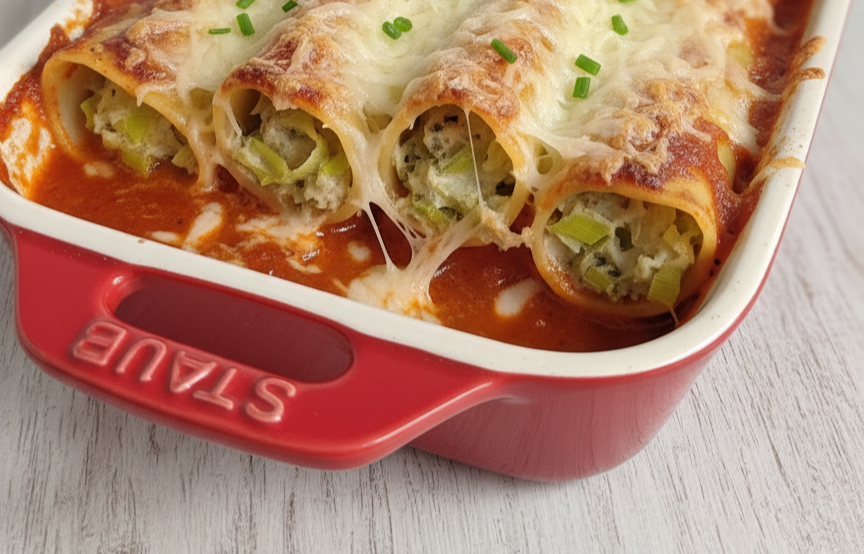 Un plat généreux et fondant, parfait pour un repas convivial. Antigaspi, car on va utiliser le vert du poireau, généralement relégué à une soupe ou à la poubelle ! Ces cannellonis permettent de réutiliser les verts de poireaux de la recette du beurre de poireau — rien ne se perd, tout se savoure !